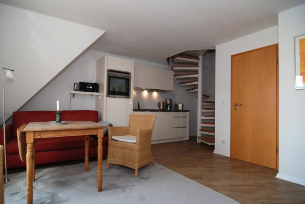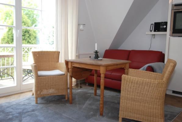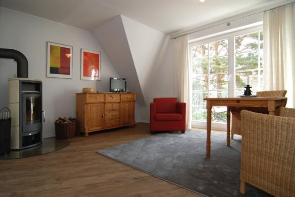 Zu jeder Jahreszeit finden Sie hier Ruhe und Entspannung, sei es auf dem Balkon oder vor dem Kamin. Diese Maisonette-Ferienwohnung liegt in einem für den Darß typischen Rohrdachhaus - für einen romantischen Urlaub zu zweit.