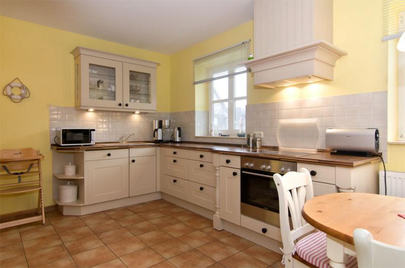 - voll ausgestattete Küche mit Cerankochfeld, Abzugshaube, Backofen, Kühlschrank mit Gefrierfach
