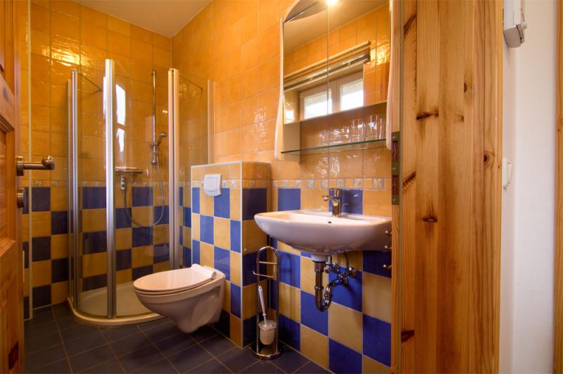 - Bad mit Dusche, WC, Waschtisch und Fußbodenheizung im Erdgeschoss