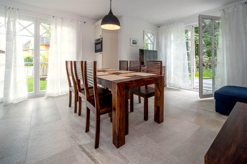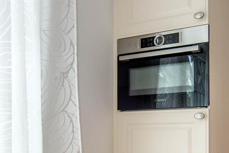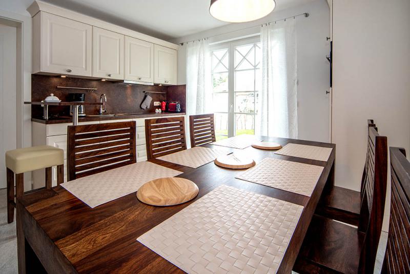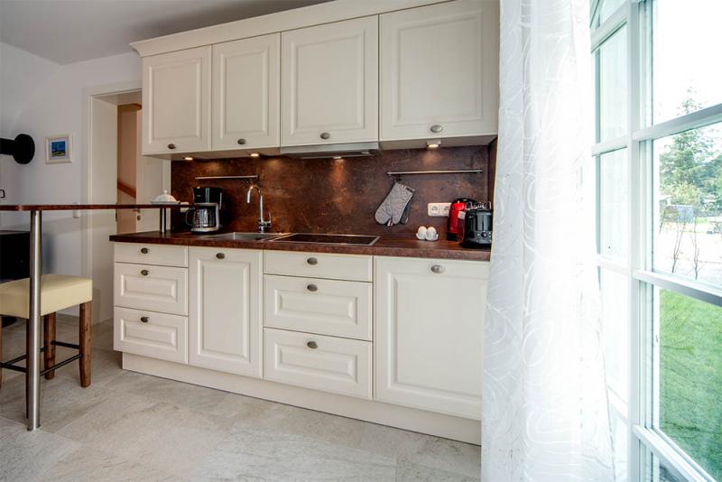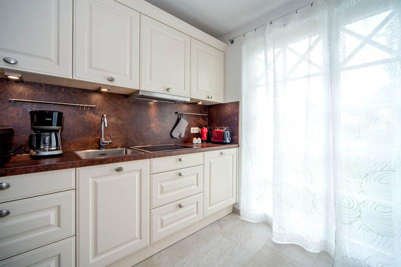 - komplett ausgestattete und hochwertige Küche mit Induktionsherd, Backofen mit Mikrowelle, Geschirrspüler, Kühlschrank mit Gefrierfach