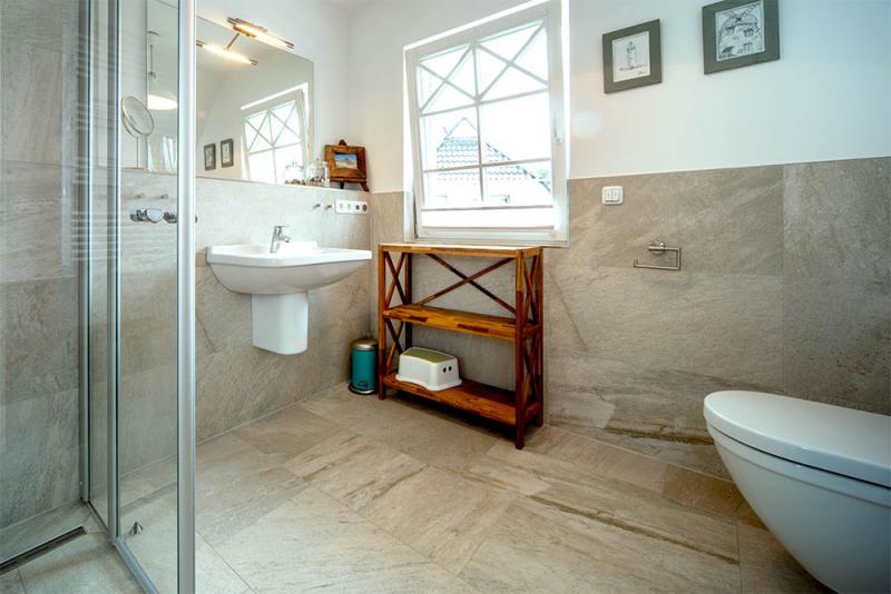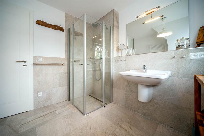 - drei Schlafzimmer im Obergeschoss: zwei Schlafzimmer mit Doppelbett, ein Schlafzimmer mit Einzelbett und Ausziehbett (Aufbettung für ein Kind möglich)