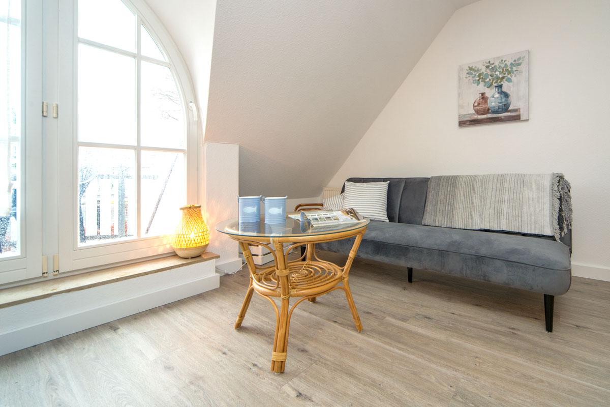 - Schlafsofa (110 x 200) im Wohnbereich für eine Aufbettung vorhanden