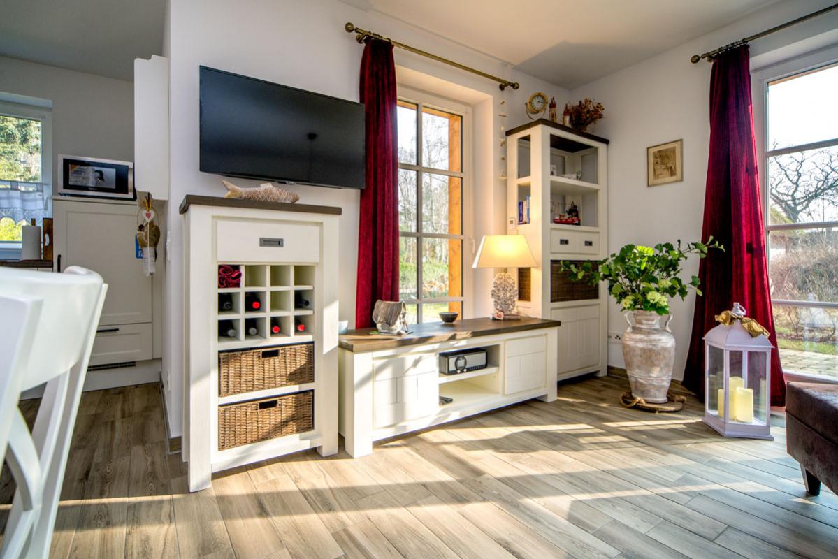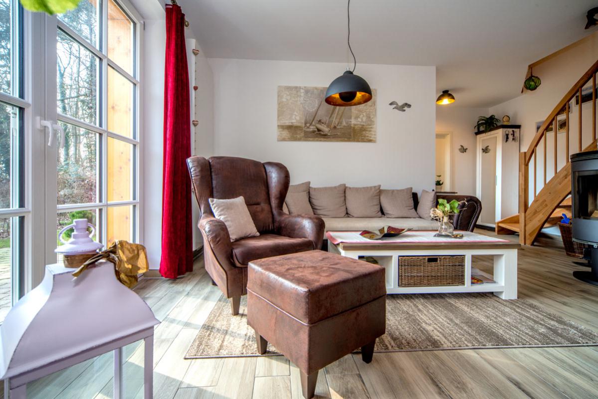 Diese Doppelhaushälfte ist liebevoll und ausgesucht eingerichtet. Die großzügige Wohnung für zwei ist mit Blick auf den Wald dennoch zentral im Dorf gelegen. Sie erreichen fußläufig Cafés und Einkaufsmöglichkeiten.
