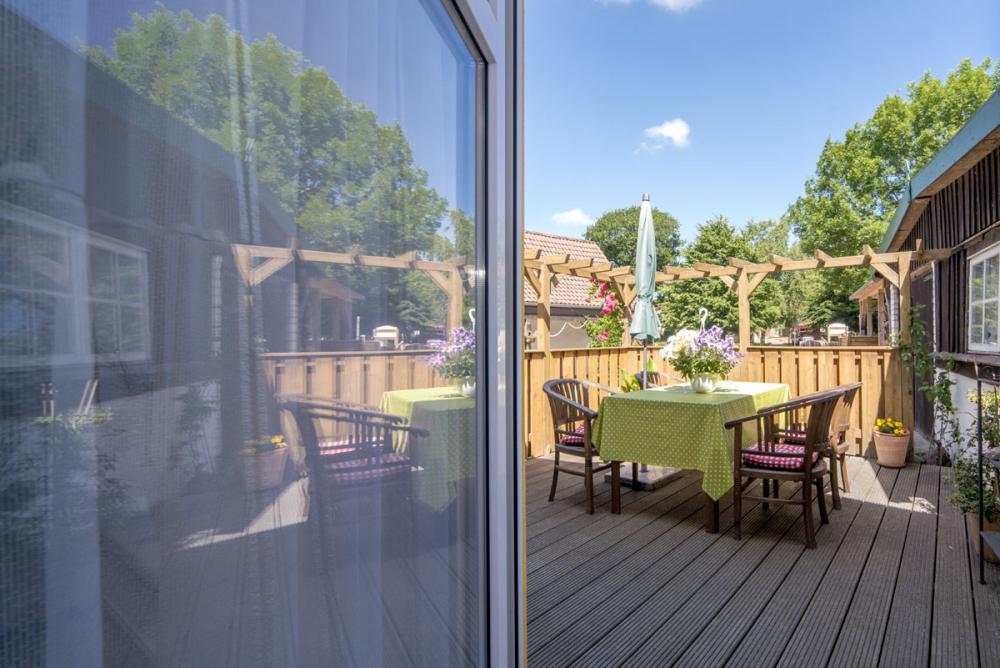 - Terrasse mit Terrassenmöbeln und Garten mit Grillplatz