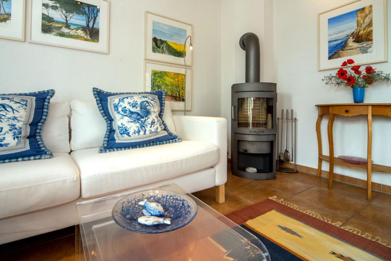- Kaminofen im Wohn- / Essraum mit komplett ausgestatteter offener Küche mit Ceran-Kochfeld, Backofen, Geschirrspüler, Mikrowelle, etc.