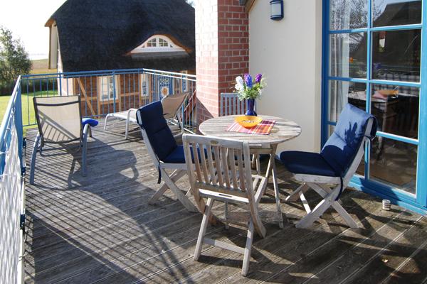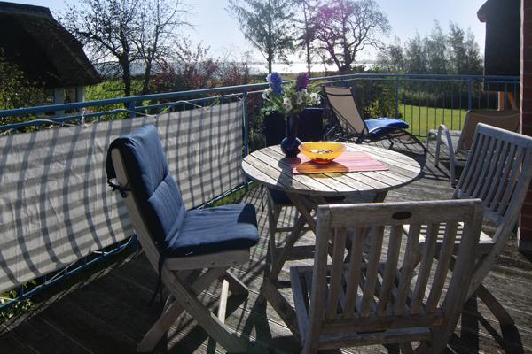 - 20 qm Balkon mit Boddenblick und Balkonmöbeln