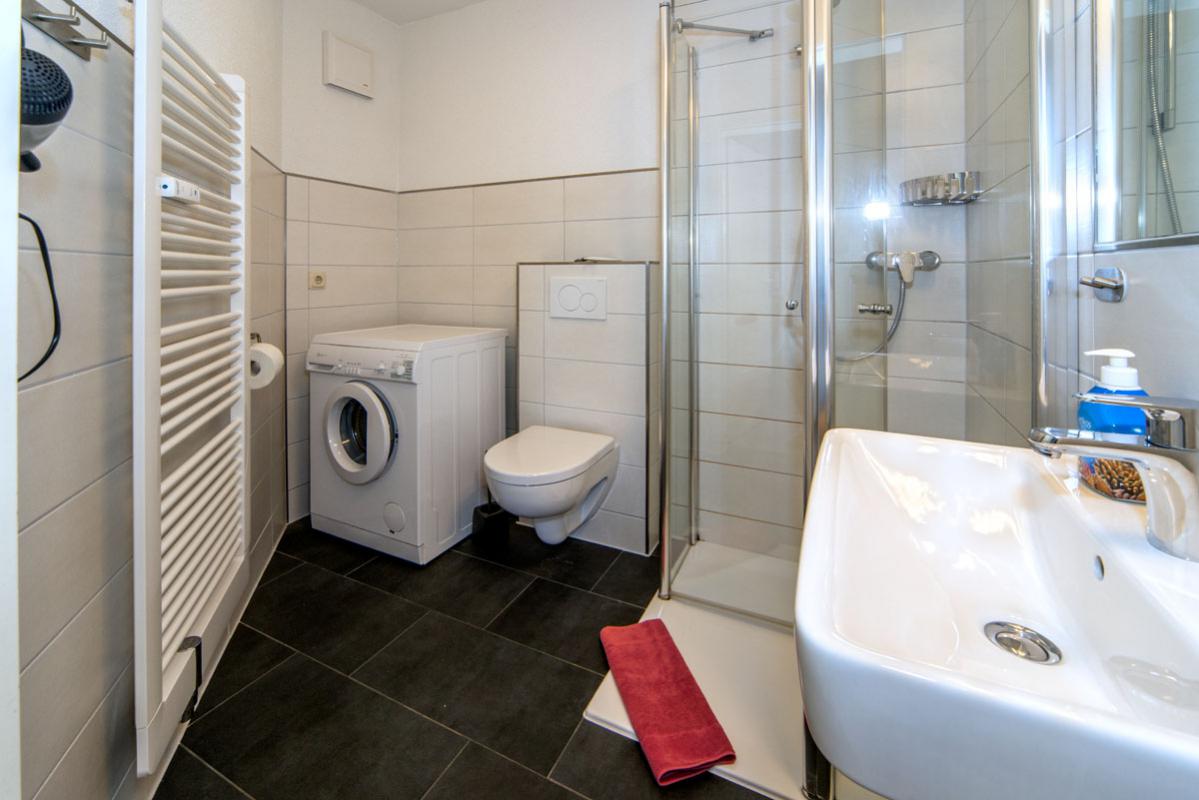 - neues Bad mit Dusche, Handtuchtrockner, Fußbodenheizung, Waschmaschine, Fön
