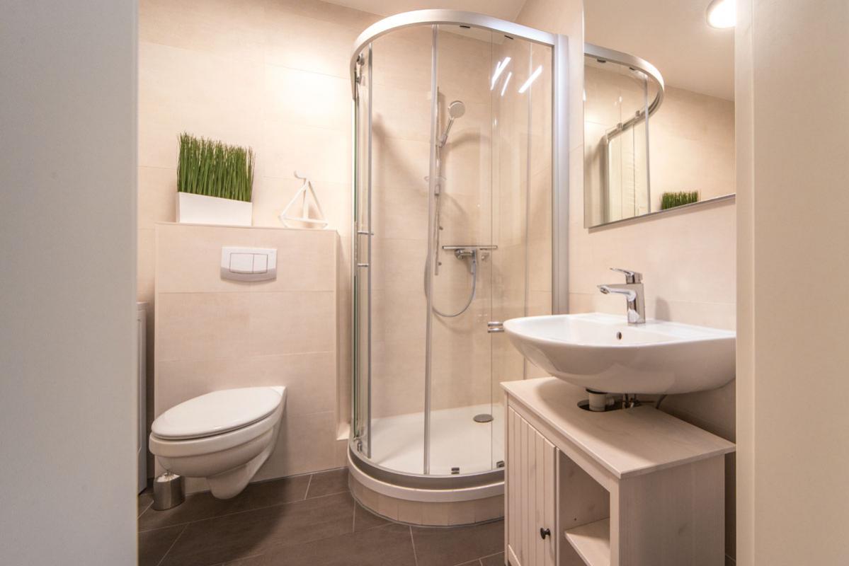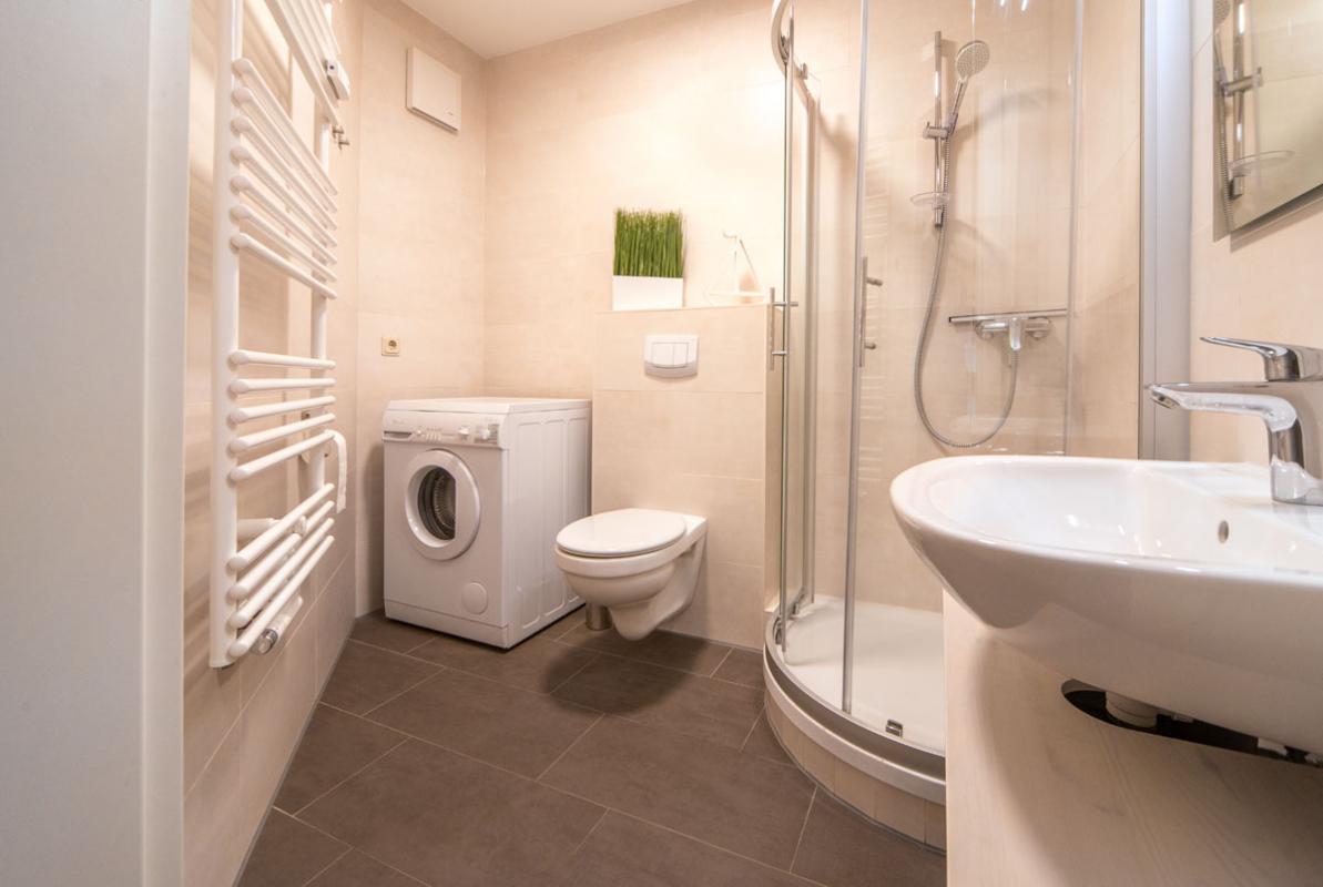 - Bad mit Dusche, Waschmaschine, Fön