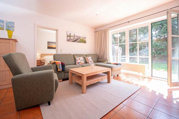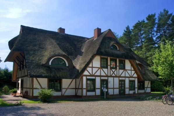 Harmonisch in die reizvolle Landschaft fügt sich das rohrgedeckte Haus ein. Direkt am Darßer Wald gelegen sind es nur ca. 20 Minuten mit dem Fahrrad zum urwüchsigen Weststrand, der nur zu Fuß oder mit dem Fahrrad zu erreichen ist.