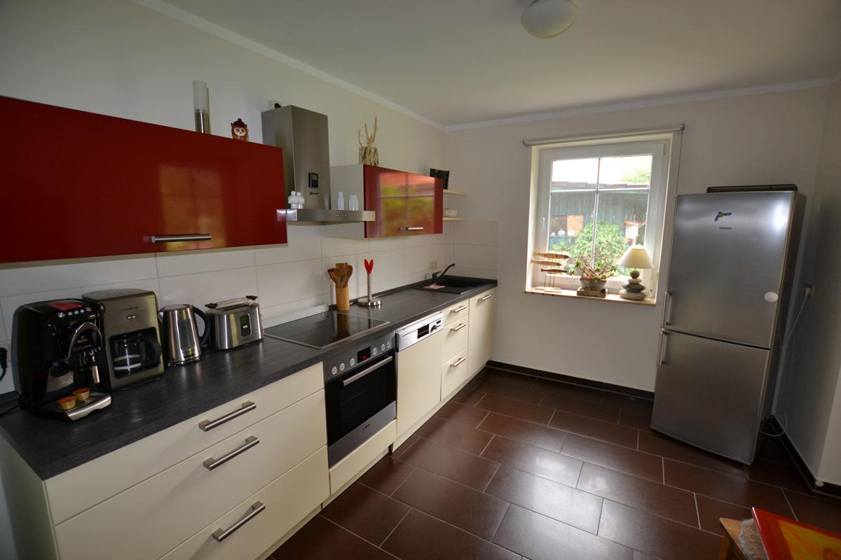 - komplett ausgestattete Küche mit Geschirrspüler, Herd mit Ceranfeld und Backofen