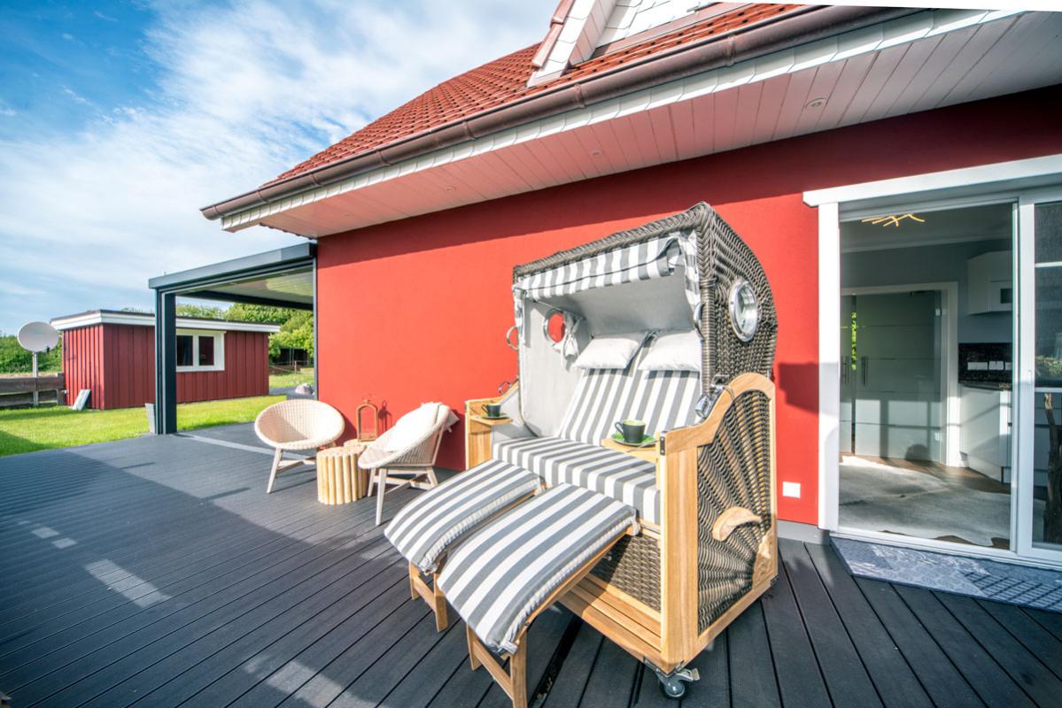 Erleben Sie Urlaub mit der ganzen Familie in diesem 2019 erbauten großzügigen Ferienhaus, das ruhig an einer Pferdekoppel gelegen ist. Das Haus liegt zudem fußläufig zum Reiterhof und zum Erlebnishof Gut Darß - für abwechslungsreiche Unternehmungen für Groß und Klein.