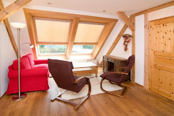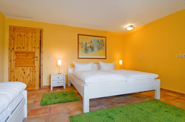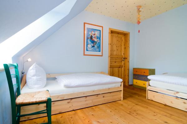 - Insgesamt 12 Schlafplätze: 4 Schlafzimmer mit insgesamt 8 Betten, in zwei Schlafzimmern befindet sich ein zusätzliches Bett, 1 weiteres Schlafzimmer im Spitzboden mit zwei Betten (vorwiegend für Kinder)