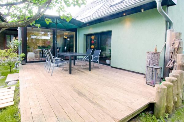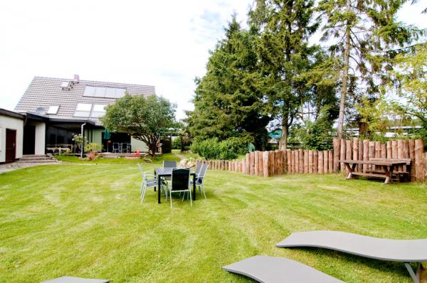 Dieses Ferienhaus lädt die ganze Familie ein. Bis zu 12 Personen können hier wohnen und dennoch ist Platz für jeden. Zum Beispiel auf der Südterrasse im großen Sonnengarten des über 2.000 qm Grundstücks.