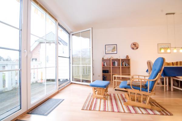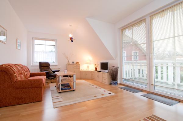 Die Wohnung "Antje" im Wiesengrund in Born liegt zentral und ruhig. Von hier gelangen Sie fußläufig zum Bäcker, zu Restaurants und Cafés oder zum idyllischen Boddenhafen.