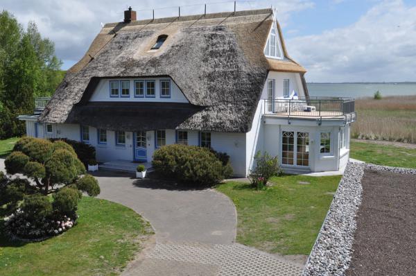 Die Ferienwohnung liegt in einer ruhigen Seitenstraßen in einer exklusiven, reetgedeckten Villa im Landhausstil mit großer Terrasse. Sie beeindruckt durch einen bemerkenswerten Boddenblick sowie direktem Boddenzugang. Erleben Sie den Darß von seiner schönsten Seite.