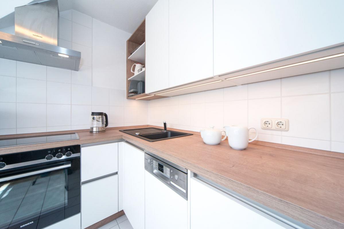 - gut ausgestattete, offene Küche mit Ceranfeld, Backofen, Mikrowelle, Geschirrspüler