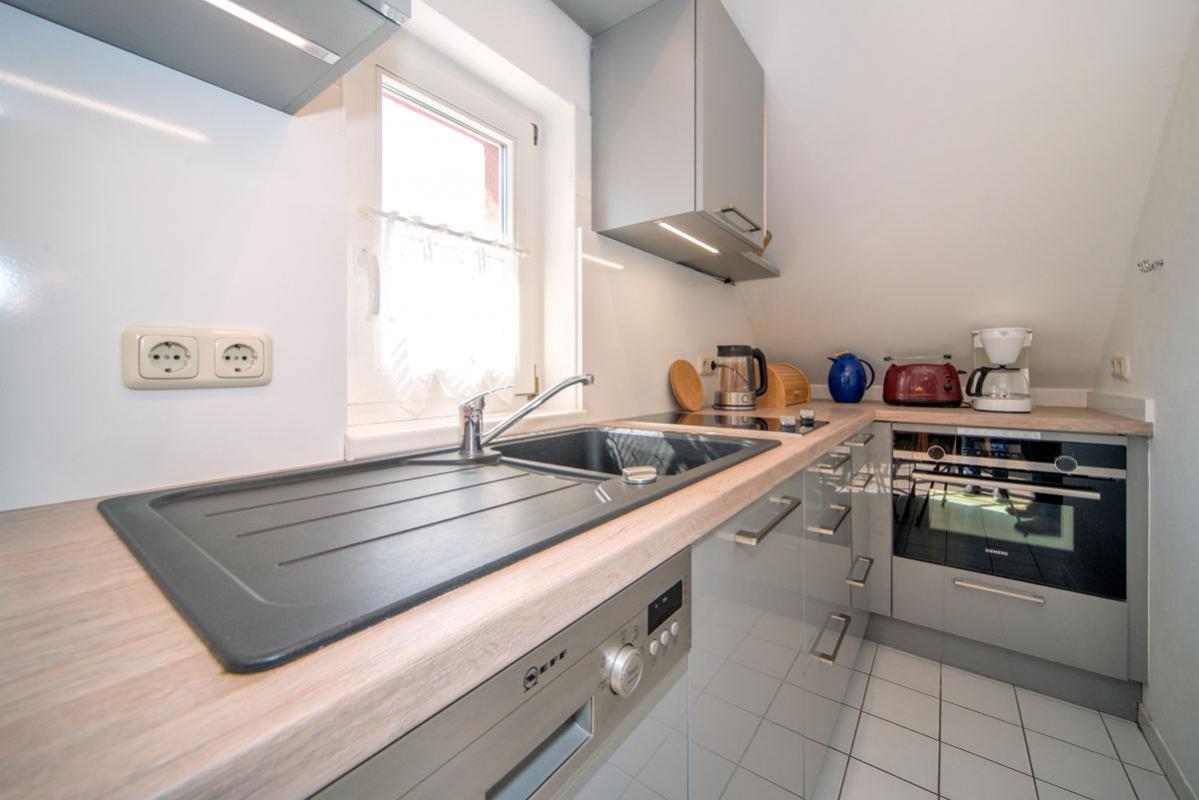 - gut ausgestattete, offene Küche mit 2-Platten-Ceranfeld, Backofen, Mikrowelle, Geschirrspüler