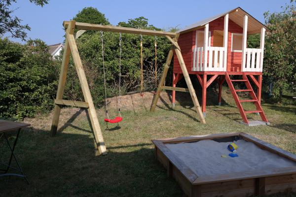 - Schaukel, Spielhaus und Sandkiste