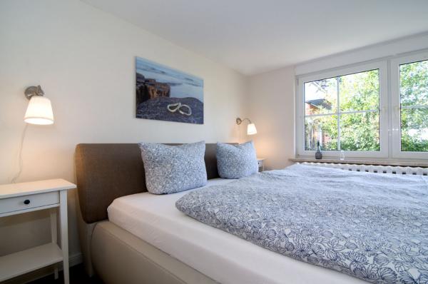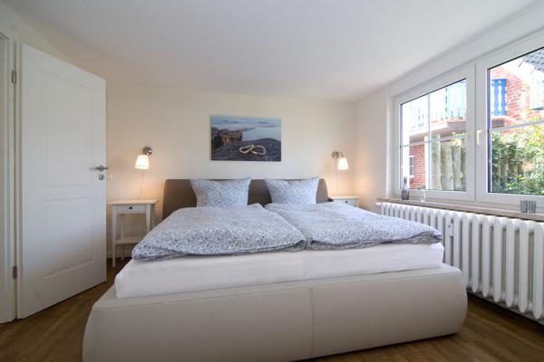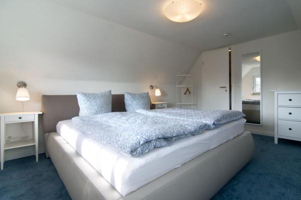 - ein Schlafzimmer im OG mit Boxspring-Doppelbett 200x180 cm