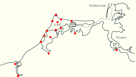 Der Darß und seine Umgebung bieten eine Vielzahl an Ausflugs- und Erlebnismöglichkeiten. Einen paar von den vielen Möglichkeiten möchten wir Ihnen hier empfehlen. Bewegen Sie dazu die Maus über die roten Punkte.